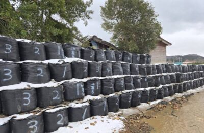 豪雨時の作業は、命の危険があるため安全な場所へ避難してください。
